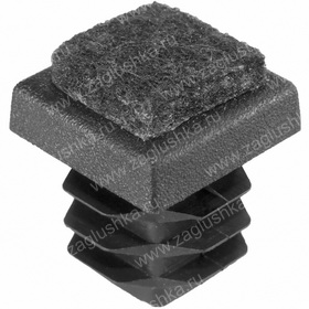 Заглушка пластиковая для труб квадратного сечения с габаритами 15x15 мм и толщиной стенки 0.8-2.5 мм. Заглушка внутренняя, с рёберной конструкцией заходящей части. Рёбра обеспечивают надёжное крепление заглушки внутри профильной трубы. Изделие, как правило, используется в качестве ножки/опоры мебели на металлокаркасе (стулья, столы, кровати, различное производственное и медицинское оборудование и др.). В комплекте с заглушкой поставляется самоклеящаяся фетровая подкладка, которая защищает напольное покрытие о царапин.