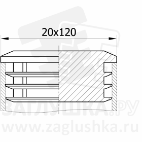 Заглушка пластиковая внутренняя с плоской шляпкой для труб прямоугольного сечения размером 20х120 мм. Рёберная конструкция заходящей части обеспечивает надёжное крепление и удерживает заглушку внутри трубы. Заглушка защищает трубу от попадания внутрь влаги и пыли. Аккуратно закрывает торец обрезанной трубы в конструкции на металлическом каркасе.