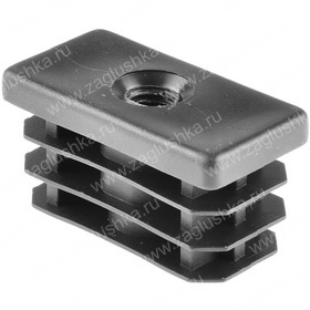 Заглушка пластиковая внутренняя с рёбрами, толстой шляпкой и внутренней пластиковой резьбой М8. Предназначена для профильных труб прямоугольного сечения с габаритами 25x50 мм с толщиной стенки 1.0-4.0 мм. Используется вместе с резьбовой опорой и применяется для регулировки металлоконструкции по высоте. Благодаря рёберной конструкции заходящей части обеспечивается надёжное крепление заглушки внутри трубы.