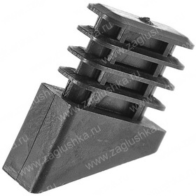 Заглушка пластиковая внутренняя с толстой плоской шляпкой. Предназначена для труб прямоугольного сечения с ровным срезом, расположенных под наклоном 30 градусов к основанию, с внешними габаритами сечения 15x30 мм. Рёберная конструкция заходящей части обеспечивает надёжное крепление заглушки внутри трубы. На основании заглушки предусмотрены насечки антискольжения. Применяется в качестве опоры, например для стульев и столов на металлокаркасе.