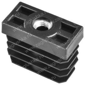 Заглушка пластиковая внутренняя с металлической резьбой М10 для труб прямоугольного сечения с внешними габаритами сечения 20х40 мм и толщиной стенки трубы 1.0-1.5 мм. Подходит для использования с соответствующей резьбовой опорой и применяется для регулировки металлоконструкции по высоте.