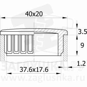Заглушка пластиковая внутренняя с вертикальными рёбрами и тонкой шляпкой, полностью хромированная. Предназначена для труб прямоугольного сечения размером 20x40 мм и толщиной стенки трубы 1.2 мм. Высококачественное гальваническое покрытие не подвержено коррозии и не стирается. В отличие от аналогичных металлических изделий, пластиковая заглушка значительно легче. Такая заглушка органично дополняет внешний вид хромированного металлоизделия.