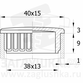 Заглушка пластиковая внутренняя с вертикальными рёбрами и тонкой шляпкой, полностью хромированная. Предназначена для труб прямоугольного сечения размером 15x40 мм и толщиной стенки трубы 1.0 мм. Высококачественное гальваническое покрытие не подвержено коррозии и не стирается. В отличие от аналогичных металлических изделий, пластиковая заглушка значительно легче. Такая заглушка органично дополняет внешний вид хромированного металлоизделия.