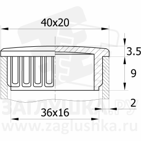 Заглушка пластиковая внутренняя с вертикальными рёбрами и тонкой шляпкой, полностью хромированная. Предназначена для труб прямоугольного сечения размером 20x40 мм и толщиной стенки трубы 2.0 мм. Высококачественное гальваническое покрытие не подвержено коррозии и не стирается. В отличие от аналогичных металлических изделий, пластиковая заглушка значительно легче. Такая заглушка органично дополняет внешний вид хромированного металлоизделия.