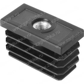 Заглушка пластиковая внутренняя с металлической резьбой М8 для труб прямоугольного сечения с внешними габаритами сечения 25х50 мм и толщиной стенки трубы 1.0-3.5 мм. Подходит для использования с соответствующей резьбовой опорой и применяется для регулировки металлоконструкции по высоте.