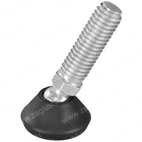 Опора резьбовая регулируемая с металлическим стержнем М10х30 и круглым пластиковым основанием 25 мм. Используется для регулировки конструкции по высоте. Опора имеет шарнирное соединение резьбового стержня и основания, что позволяет устанавливать изделие под углом к основанию.
